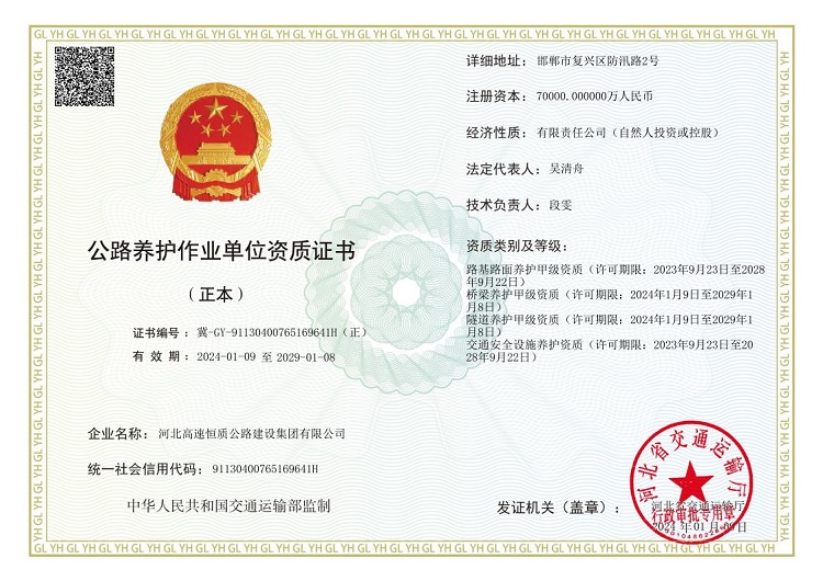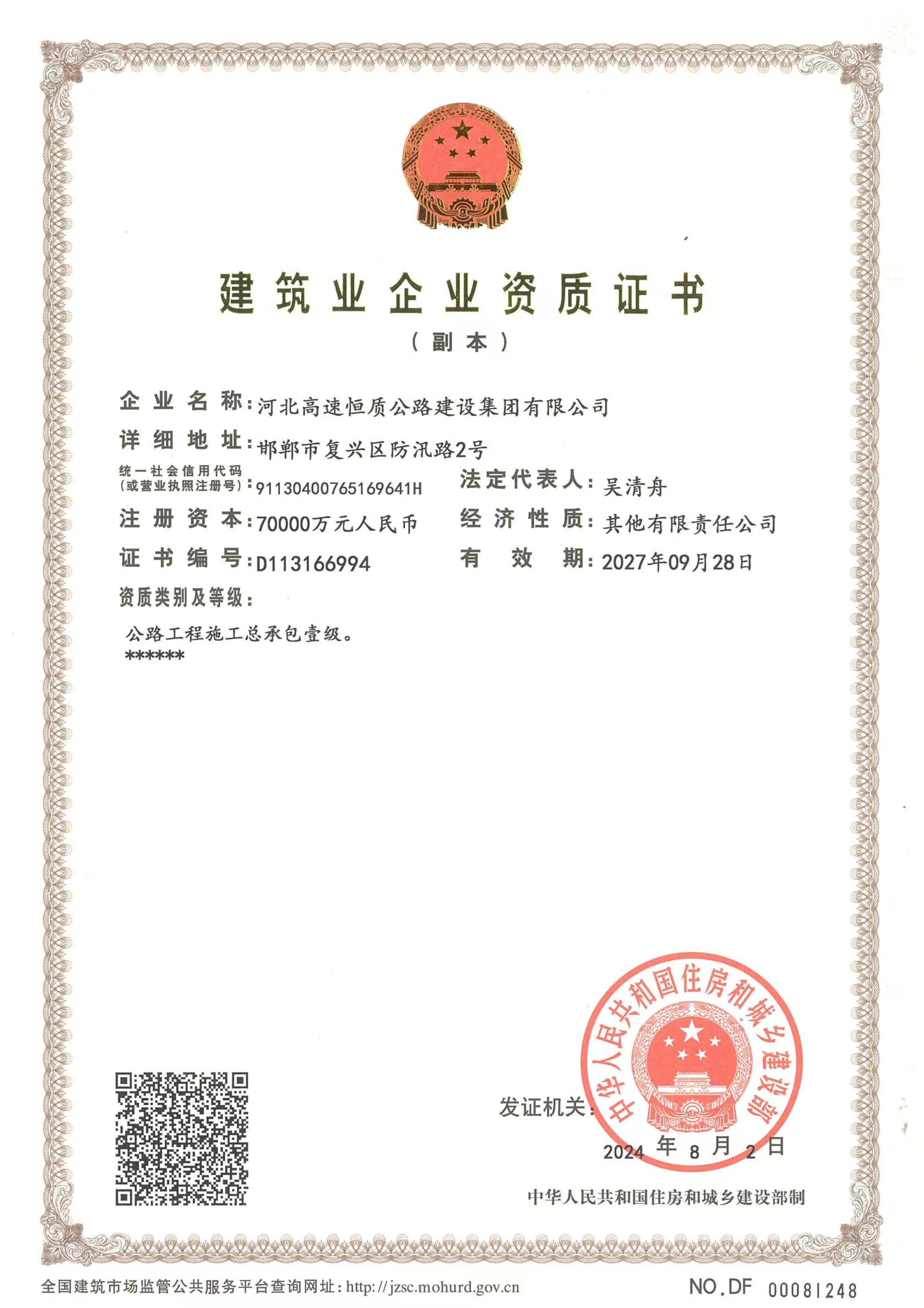 河北高速恒質(zhì)公路建設(shè)集團(tuán)有限公司始建于2004年,前身是邯鄲市恒質(zhì)公路建設(shè)集團(tuán)有限公司。2024年7月成為河北高速公路集團(tuán)有限公司二級(jí)子公司,現(xiàn)有職工500余人,下轄18家子公司13個(gè)分公司,參股公司3家 ,注冊(cè)資本7億元,是一家集公路工程施工、路用材料研發(fā)生產(chǎn)、試驗(yàn)檢測、瀝青貿(mào)易、公鐵物流于一體的多元化、綜合性單位,國家級(jí)高新技術(shù)企業(yè),河北省專精特新中小企業(yè),河北省首家瀝青拌合環(huán)保引領(lǐng)性企業(yè)。公司擁有公路工程總承包壹級(jí)、公路交通工程(公路安全設(shè)施)專業(yè)承包壹級(jí)、機(jī)電工程施工總承包貳級(jí)、電力工程施工總承包貳級(jí)、市政公用工程施工總承包貳級(jí)、建筑工...
